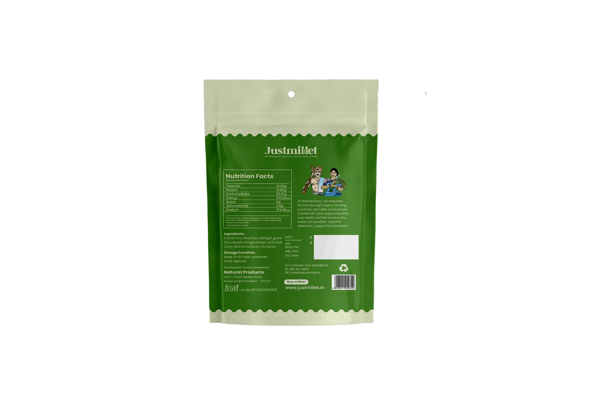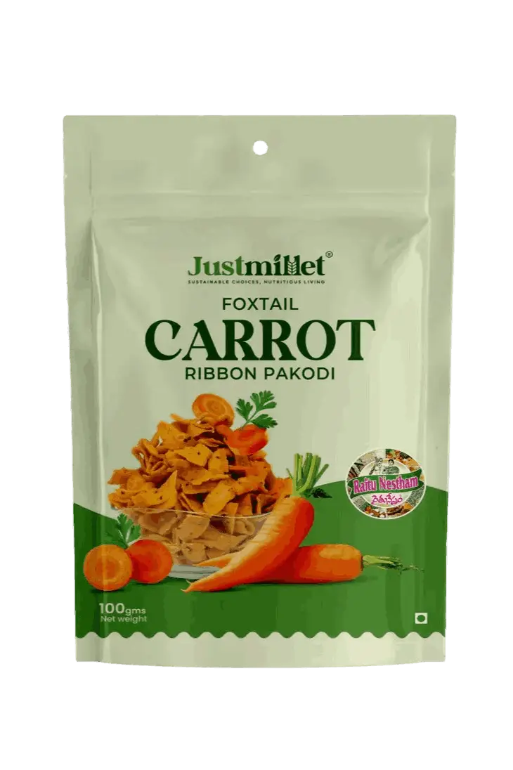 A crunchy, fiber-rich snack made with millet flour and real carrots—flavorful, healthy, and satisfying.